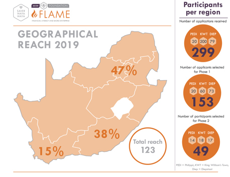 By supporting the FLAME programme you are contributing to positive change across South Africa. Supporting the FLAME programme isn’t just about empowering entrepreneurs. Your contribution ripples through small businesses and out into the broader community, creating jobs and stimulating growth in local economies.
